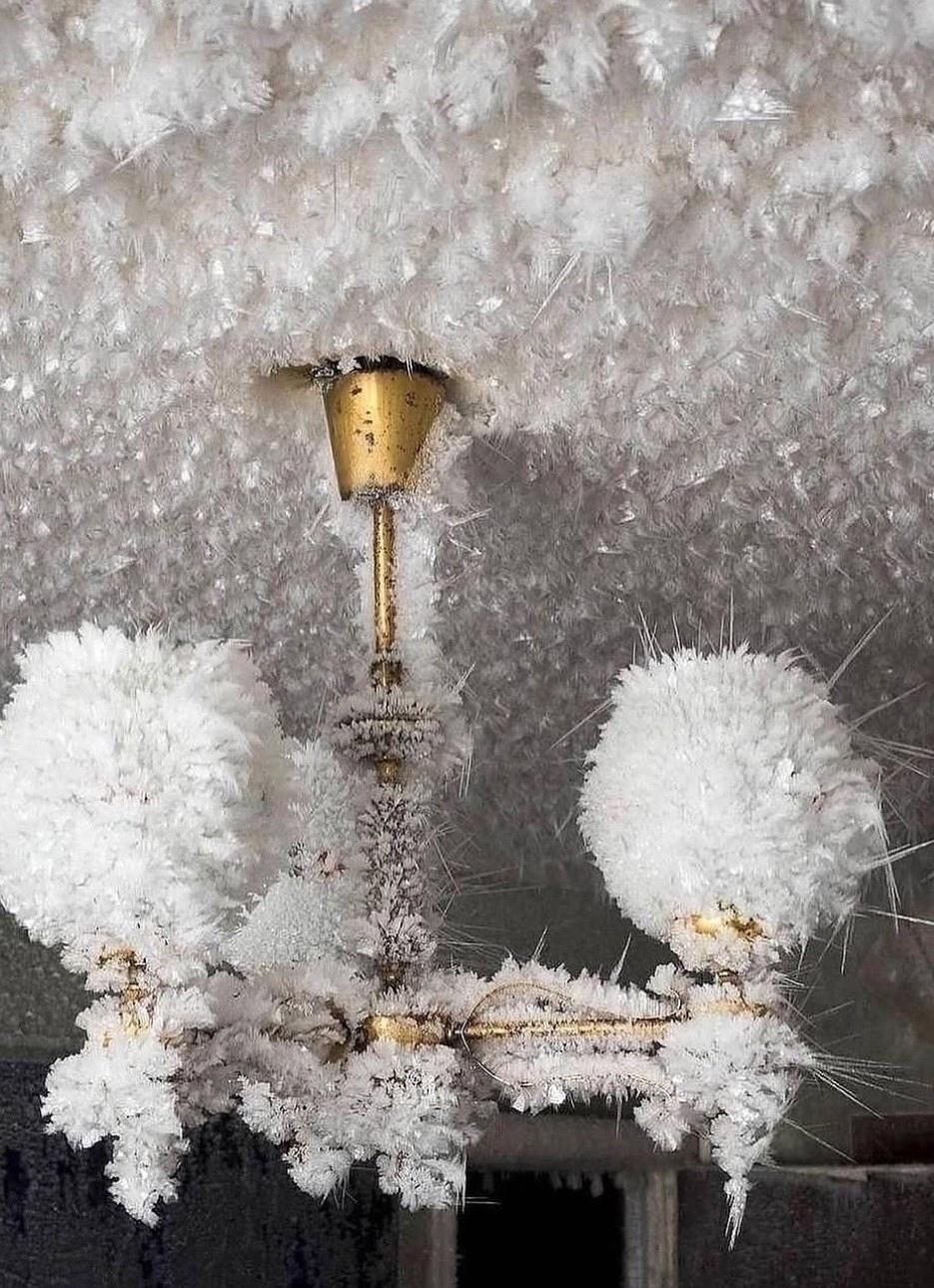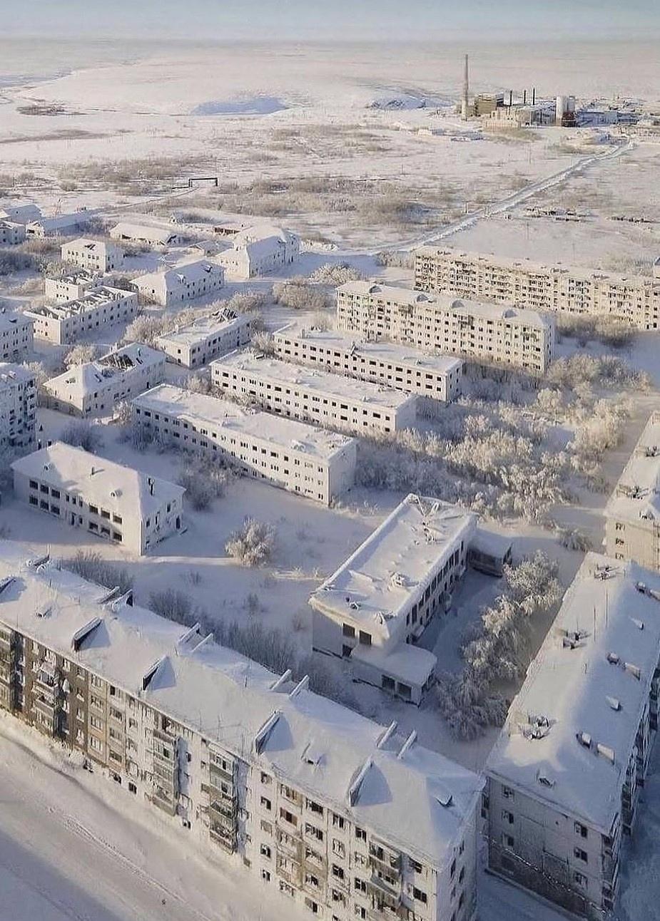 Эти кадры сделаны среди пустующих зданий посёлка в 17 километрах от угледобывающей Воркуты. Зимой здесь температура нередко опускается до −50 °C, и холод буквально впечатывается в стены, окна и тишину.