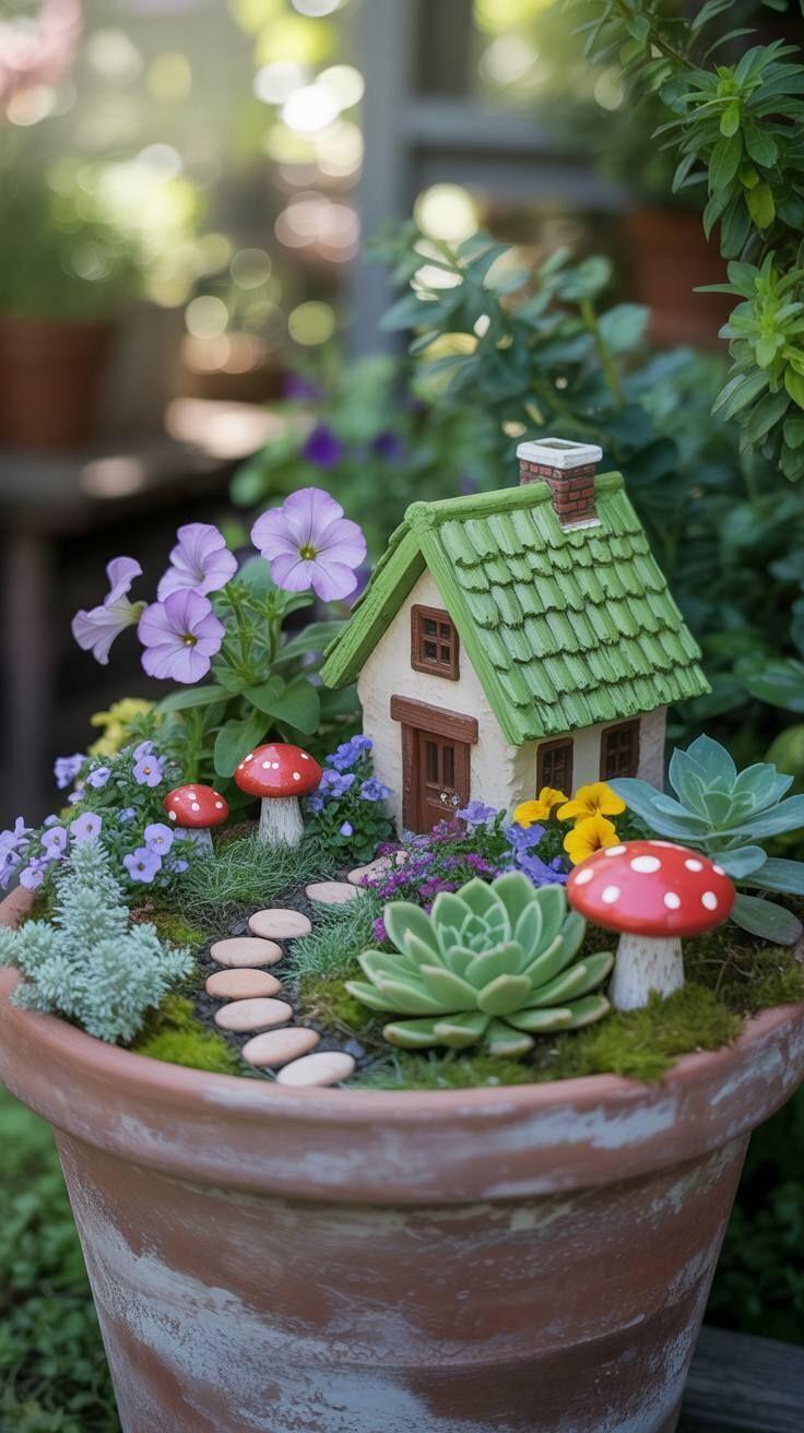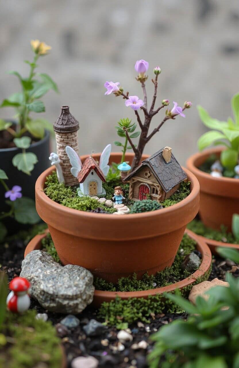 "Волшебные сады" для маленьких сказочных фей... Чудеса, которые можно организовать в любых цветочных горшках .